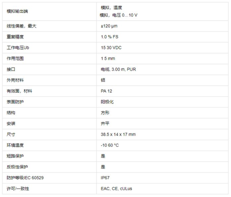 德國巴魯夫balluff磁致伸縮位移傳感器BTL5-S172-M0100-P-S32傳感器用來檢測磁致伸縮位移的。它的身體中有一個(gè)孔,可以配合樂高的軸。巴魯夫balluff電子尺BTL5-S172-M0100-P-S32當(dāng)連接到RCX上時(shí),軸每轉(zhuǎn)過1/16圈,磁致伸縮位移傳感器就會(huì)計(jì)數(shù)一次。往一個(gè)方向轉(zhuǎn)動(dòng)時(shí),計(jì)數(shù)增加,轉(zhuǎn)動(dòng)方向改變時(shí),計(jì)數(shù)減少。balluffBTL5-S172-M0150-B-S32位移傳感器計(jì)數(shù)與磁致伸縮位移傳感器的初始位置有關(guān)。當(dāng)初始化磁致伸縮位移傳感器時(shí),它的計(jì)數(shù)值被設(shè)置為0,如果需要,你可以用編程把它重新復(fù)位。磁致伸縮位移位移傳感器的應(yīng)用適用于汽車,工程機(jī)械,宇宙裝置、導(dǎo)彈、飛機(jī)雷達(dá)天線的伺服系統(tǒng)以及注塑機(jī),木工機(jī)械,印刷機(jī),電子尺,機(jī)器人,工程監(jiān)測,BTL5-S172-M0150-B-S32電子尺電腦控制運(yùn)動(dòng)器械等需要精確測量位移的場合。從構(gòu)造形式來看, 磁致伸縮位移傳感器可分為線繞磁致伸縮位移傳感器和非線繞磁致伸縮位移傳感器兩大類。線繞磁致伸縮位移傳感器是將電阻絲繞在金屬、巴魯夫BTL5-S172-M0150-B-S32磁致伸縮位移傳感器陶瓷和塑料骨架上作為電阻元件。優(yōu)點(diǎn):電阻溫度系數(shù)低,電阻值穩(wěn)定性好,功率負(fù)荷性大,工作壽命長。缺點(diǎn):分辨力有一定階梯性、總阻值范圍窄、高頻性能差非線繞磁致伸縮位移傳感器有合成膜磁致伸縮位移傳感器、玻璃釉磁致伸縮位移傳感器、BTL5-S172-M0100-P-S32電子尺balluff導(dǎo)電塑料磁致伸縮位移傳感器等。合成膜磁致伸縮位移傳感器是將炭黑、石墨和有機(jī)粘合劑、填充料等混合制成的漿料采用多種方法(如絲網(wǎng)印刷) 涂覆在基體上再經(jīng)固化而制成的電阻膜作為電阻體。優(yōu)點(diǎn):能大規(guī)模生產(chǎn),價(jià)格便宜,調(diào)節(jié)時(shí)噪聲較小,優(yōu)越的高頻性能,還具有較小的電感量和分布容量,且工作壽命長,很少突然發(fā)生嚴(yán)重?fù)p壞,總阻值范圍寬廣。JuC廣州南創(chuàng)電子科技有限公司