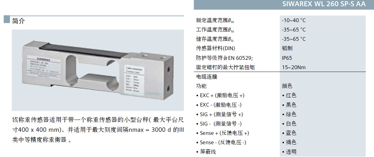 西門子Load cell SIWAREX WL260 SP-S AB稱重傳感器描述:j04廣州南創(chuàng)電子科技有限公司