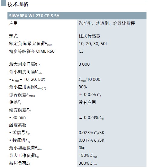 西門子SIWAREX R CC稱重傳感器技術(shù)規(guī)格