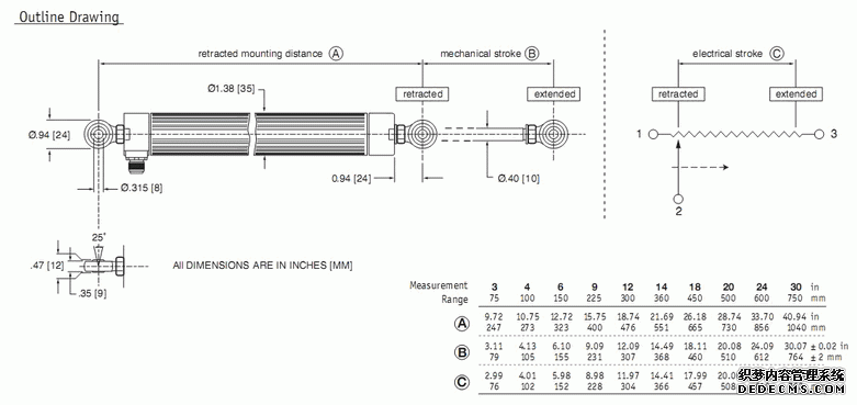美國CELESCO MLPG位移傳感器外觀尺寸圖:fo7廣州南創(chuàng)電子科技有限公司