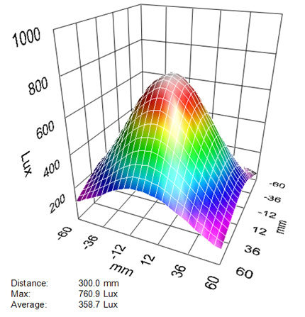 正常模式 1,300 lux:6,000 FPM-7.87英寸(20厘米)