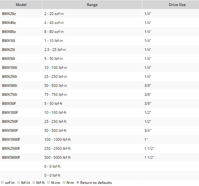 Mountz BMX扭矩傳感器技術(shù)指標(biāo):