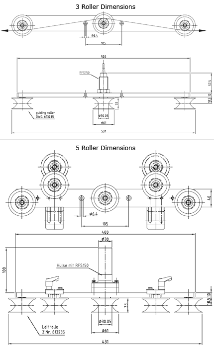 | 導(dǎo)輥 | V槽,U槽或扁圓柱(帶或不帶法蘭) |