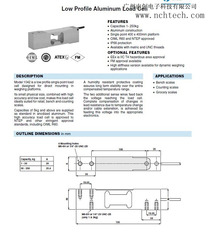 應(yīng)用:Tedea 1042單點(diǎn)式稱重傳感器應(yīng)用在平臺(tái)秤,工作臺(tái)秤,計(jì)數(shù)秤,食品秤。7Y7廣州南創(chuàng)電子科技有限公司