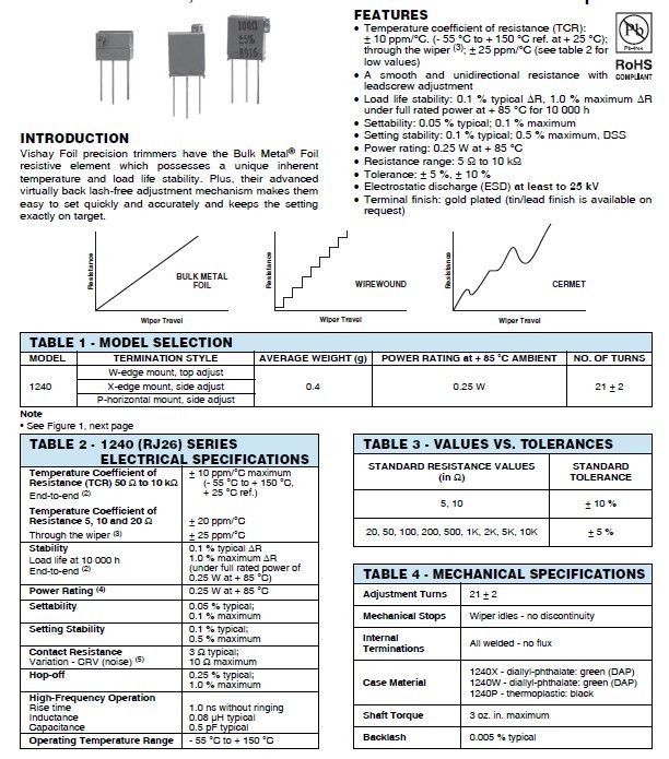Vishay Foil precision trimmers have the Bulk Metal® Foil resistive element which possesses a unique inherent temperature and load life stability. Plus, their advanced virtually back lash-free adjustment mechanism makes them easy to set quickly and accurately and keeps the setting exactly on target.2Yd廣州南創(chuàng)電子科技有限公司