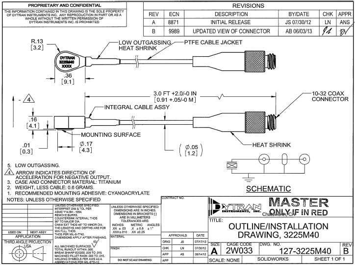 美國Dytran 3225M40加速度傳感器尺寸圖: