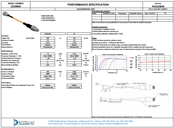 美國Dytran 3225M40加速度傳感器性能規(guī)格圖: