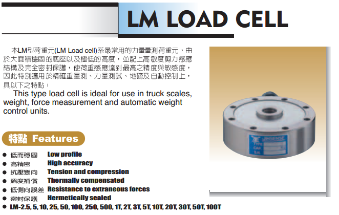 臺灣JIHSENSE荷重元LM-100kg特點Feature: