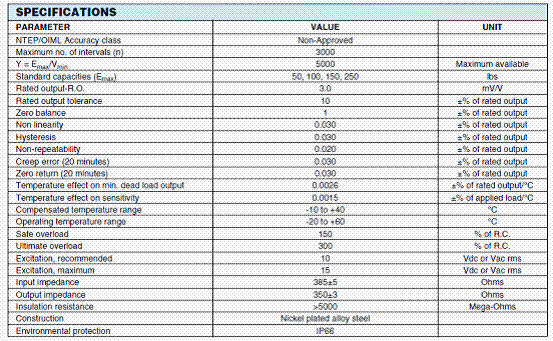 美國世銓Celtron MBB系列稱重傳感器所有量程如下: nXd廣州南創(chuàng)電子科技有限公司