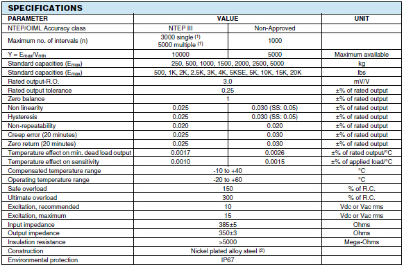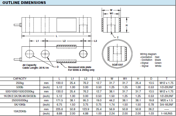 美國世銓Celtron SQB系列稱重傳感器所有量程如下: J9A廣州南創(chuàng)電子科技有限公司