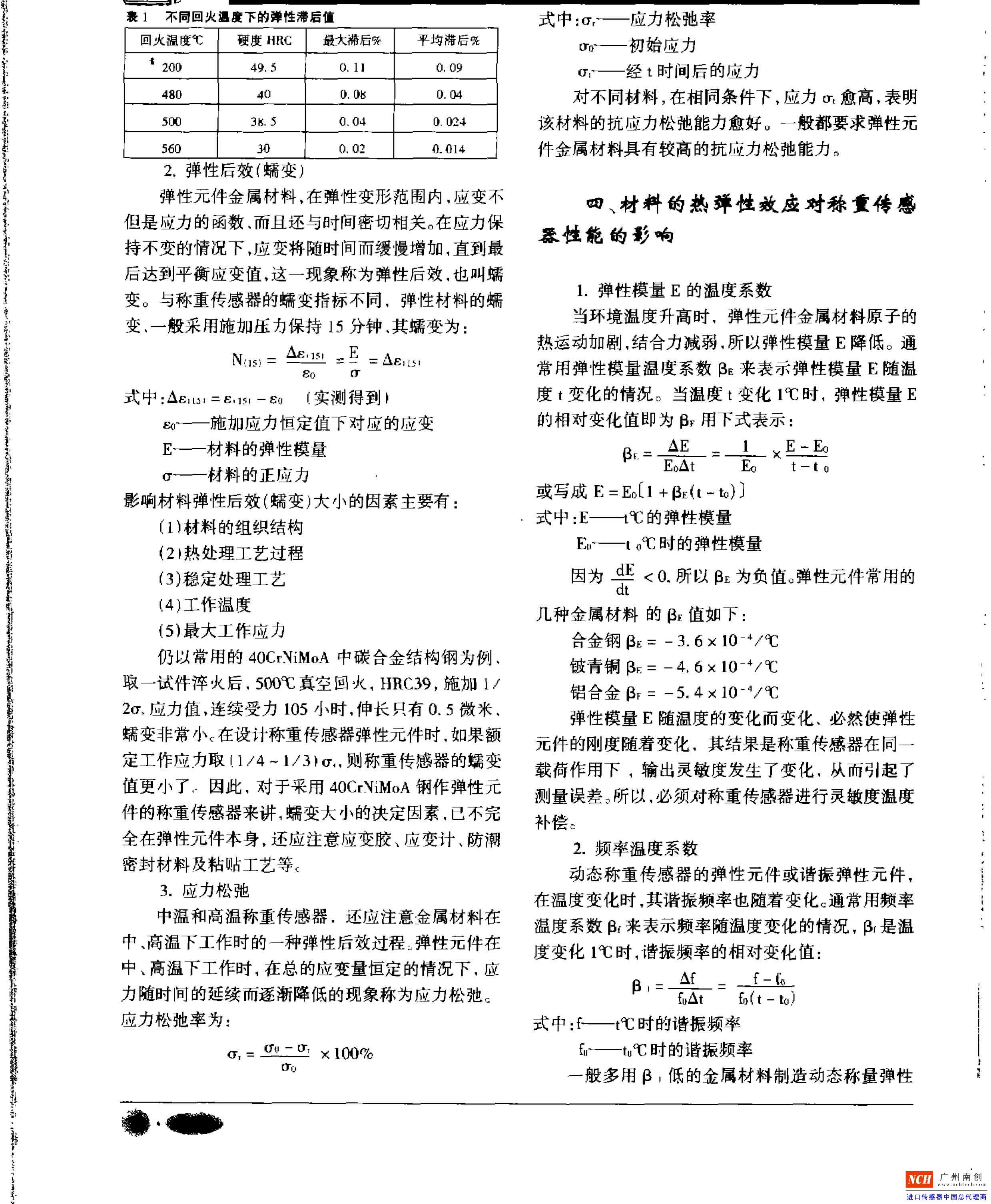 2 應(yīng)力值,連續(xù)受力105小時(shí),伸長(zhǎng)只有0.5微米,蠕變非常小 在設(shè)計(jì)稱重傳感器彈性元件時(shí),如果額定工作應(yīng)力取(1/4—1/3) 則稱重傳感器的蠕變值更小了 因此,對(duì)于采用40CrNiMoA錒作彈性元