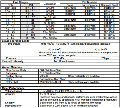 美國(guó)Proteus 800系列計(jì)量流量開關(guān)的性能和規(guī)格:
