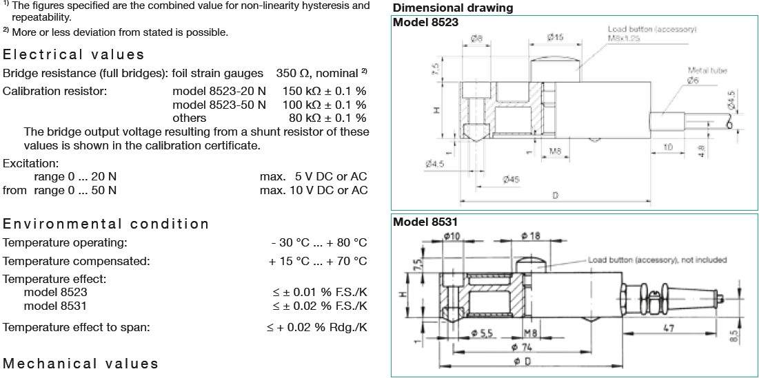 這些傳感器系列是特別適合于測(cè)定靜態(tài)和半靜態(tài)拉伸和壓縮測(cè)量。該膜稱重傳感器是基于設(shè)計(jì)已證實(shí)的原則。其緊湊的設(shè)計(jì)和非常扎實(shí)結(jié)構(gòu)使得它們適合用于制造使用植物以及在實(shí)驗(yàn)室和試驗(yàn)。傳感器特征值進(jìn)行了標(biāo)準(zhǔn)化的除外模型8523-200/50 N.這使得可以更換測(cè)量放大器不調(diào)整它。此外,它是能夠與相同的測(cè)量連接多個(gè)負(fù)載累計(jì)所述個(gè)體力范圍在同一時(shí)間。yd6廣州南創(chuàng)電子科技有限公司
