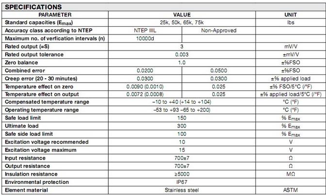 34499:  5103-B10-50k-30P1 50,000lb 30ft 3mV/V 700 OHM WW NTEP IIIL 10m FM IP67 p0Q廣州南創(chuàng)電子科技有限公司