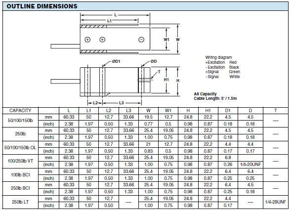 世銓稱重傳感器MBB額定容量所有型號:MBB-25kg MBB-50kg MBB-75kg MBB-125kg MBB-70lb MBB-100lb MBB-150lb MBB-250lbbxx廣州南創(chuàng)電子科技有限公司