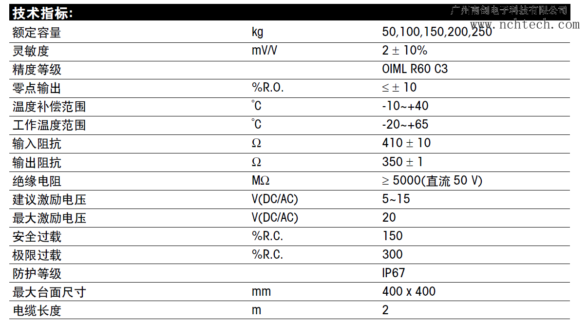 額定容量 kg 50,100,150,200,250514廣州南創(chuàng)電子科技有限公司