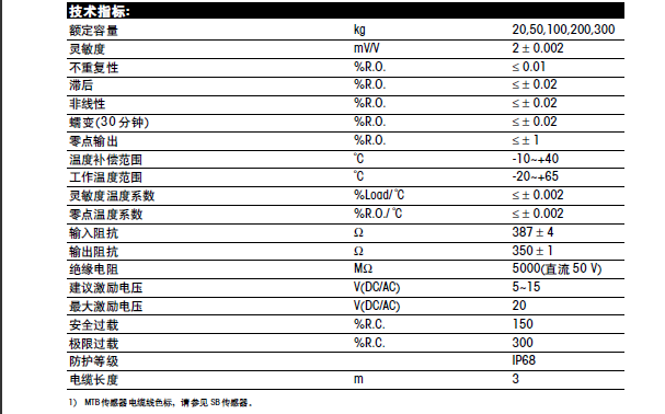 梅特勒托利多MTB-20 稱重傳感器技術(shù)指標:nbq廣州南創(chuàng)電子科技有限公司