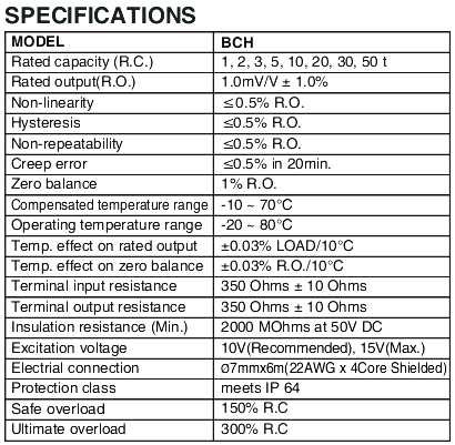 韓國奉信BCH稱重傳感器量程如下:ScR廣州南創(chuàng)電子科技有限公司