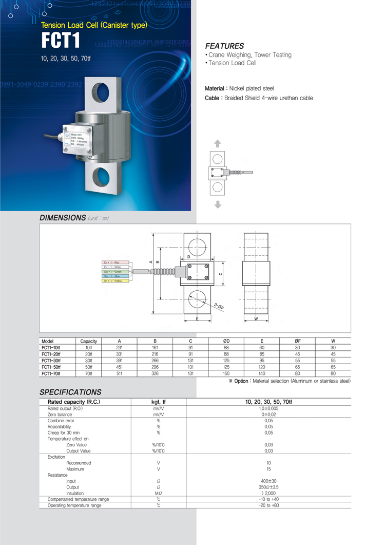 FCT1-50T稱重傳感器參數(shù):stT廣州南創(chuàng)電子科技有限公司