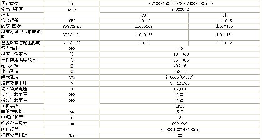 L6G-C4-150kg-3G6稱重傳感器相關(guān)技術(shù)參數(shù):Jo8廣州南創(chuàng)電子科技有限公司