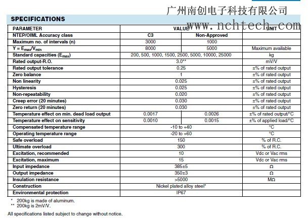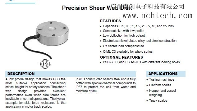 美國世銓PSD-10t稱重傳感器技術(shù)參數(shù):k98廣州南創(chuàng)電子科技有限公司