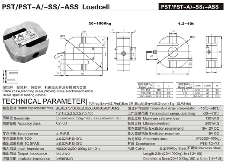 柯力PST-3T傳感器參數(中英):Wn9廣州南創(chuàng)電子科技有限公司