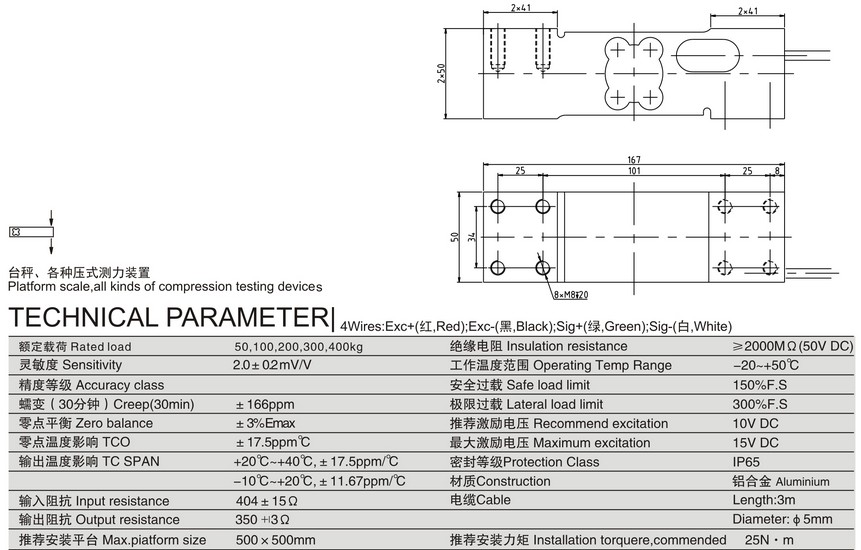 應(yīng)用場合:臺秤、各種壓式測力裝置 推薦安裝臺面 400*500mm (50-350kg);500*600mm(500-800kg)C3w廣州南創(chuàng)電子科技有限公司