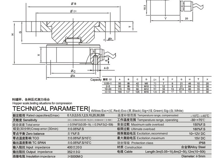 柯力YBSC-A-50t傳感器接線類型: 五、八線模擬電阻式接線,接線材質(zhì):  316L 聚四氟乙烯 其它特珠材質(zhì)oFc廣州南創(chuàng)電子科技有限公司