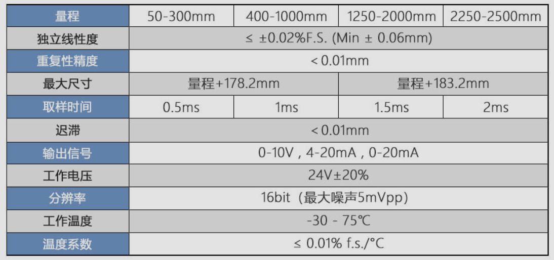 WRP-A系列磁致伸縮位移傳感器采用了HYPERWAVE磁致伸縮技術(shù)。模擬接口可提供各種電壓或電流輸出范圍,確保安裝更簡便,更容易適應(yīng)現(xiàn)有系統(tǒng)。游標(biāo)上沒有電氣接觸,避免了磨損,延長了使用壽命。參考了非線性、可重復(fù)性和滯后的高精度測量。高抗振動、抗機械沖擊,適用于惡劣的工業(yè)環(huán)境。Wcq廣州南創(chuàng)電子科技有限公司