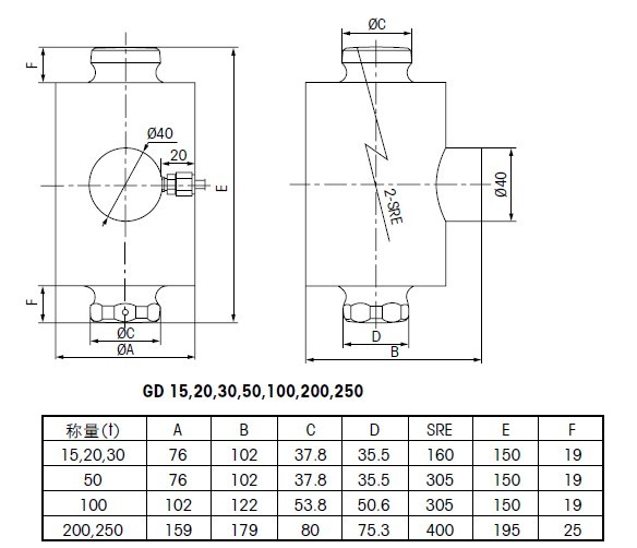 GD-200T GD搖柱式稱重傳感器,容量200T,20M電纜821廣州南創(chuàng)電子科技有限公司
