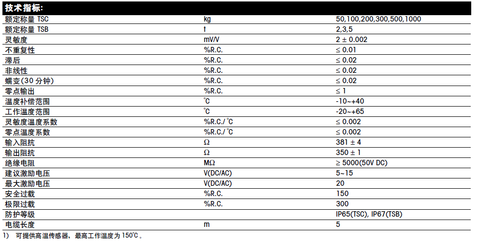 TSC-300稱重傳感器 技術參數:UoO廣州南創(chuàng)電子科技有限公司