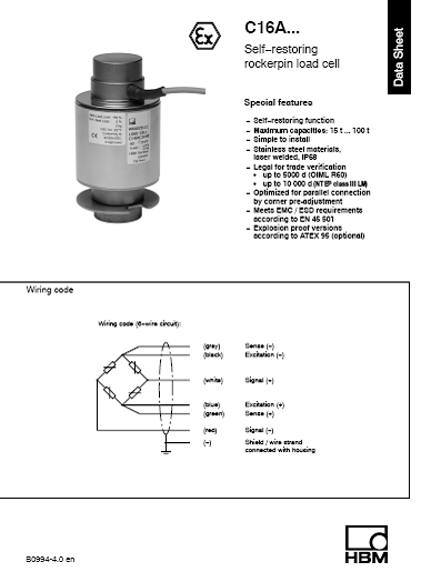 C16A柱式稱重傳感器最大量程為 20 t 到100 t. 這種自復(fù)位式稱重傳感器按照貿(mào)易精度最高達(dá)5000分度 (OIML D1, C3, C4, C5)。其采用非常堅(jiān)固的設(shè)計(jì),并采用帶有專利的自復(fù)位技術(shù),使其非常適合用于汽車衡。結(jié)構(gòu)小巧,容易安裝。其保護(hù)等級(jí)高達(dá) IP68。你還可以選擇帶有防雷擊的型號(hào)。8hw廣州南創(chuàng)電子科技有限公司