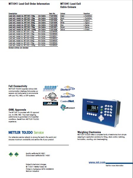瑞士梅特勒托利多MT1041-15稱重傳感器各項技術(shù)指標(biāo):75I廣州南創(chuàng)電子科技有限公司
