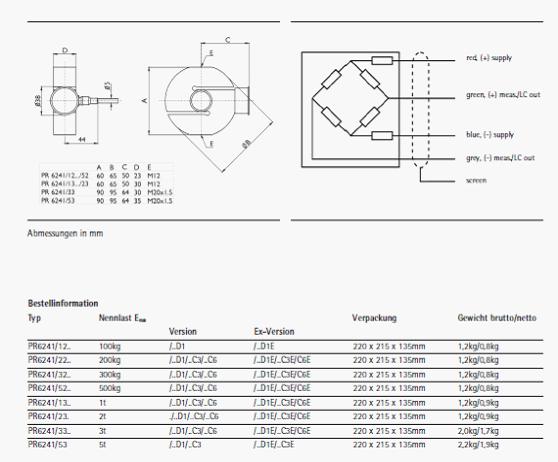 德國sartorius PR6241/22C3稱重傳感器技術(shù)參數(shù):