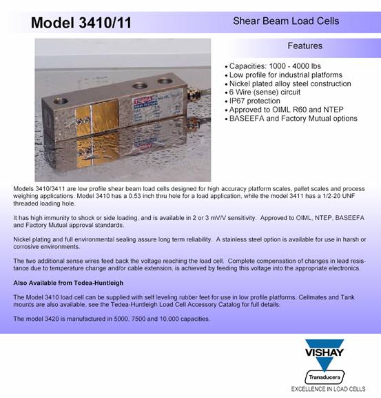 3410-4000LB稱重傳感器【美國TEDEA-HUNTLEIGH】