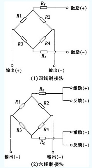 稱重傳感器有四線制接法和六線制接法兩種。稱重傳感器采用四線制接法對(duì)二次儀表無特殊要求,便于使用,但電纜線較長時(shí),極易遭受環(huán)境溫度波動(dòng)等因素的干擾;六線制接法的稱重傳感器要求與之配套使用的二次儀表具備反饋輸入接口,使用范圍具有極限性,但不易遭受環(huán)境溫度波動(dòng)等因素的干擾,在長距離測量及精密測量時(shí)具有一定的優(yōu)勢(shì)。852廣州南創(chuàng)電子科技有限公司