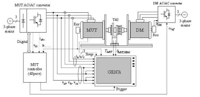相電流通過高精度, 外部 LEM 傳感器測量,其信號通過 HBM 數(shù)據(jù)記錄儀以 2M/s 的采樣率采集。LEM分流的壓降通過BNC電纜發(fā)送到Gen3i。 pUG廣州南創(chuàng)電子科技有限公司