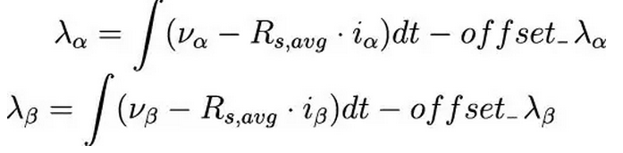 對于每個電周期(循環(huán)),為避免計算的磁鏈分量漂移,偏移校正是必要的。一旦 (a,b) 分量被計算,采用旋轉(zhuǎn)變換可以非常簡單地獲得(d,q) 分量,磁鏈也可以被計算。