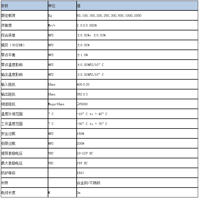 寧波柯力ILB稱重傳感器250KG所有量程如下: