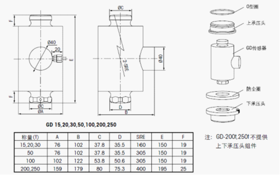 GD-200T GD搖柱式稱重傳感器,容量200T,20M電纜