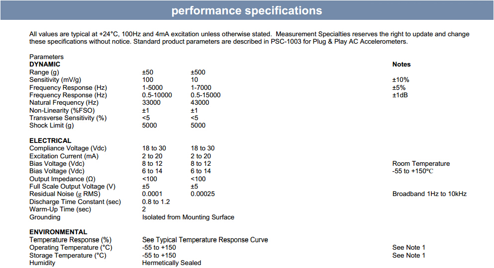 美國MEAS 7100A系列加速度計性能規(guī)格圖:Dkp廣州南創(chuàng)電子科技有限公司