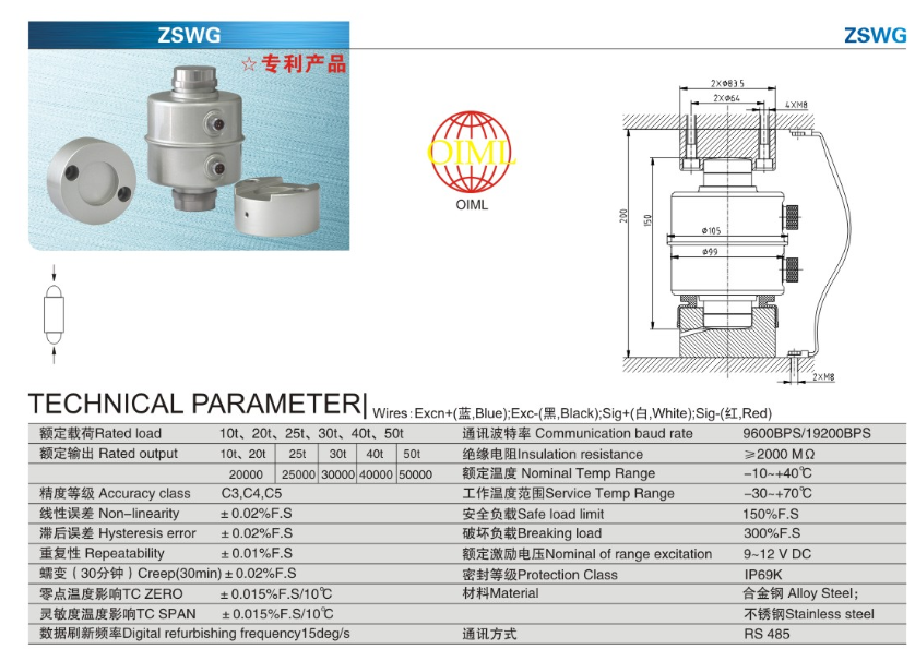 寧波柯力稱重傳感器ZSW-D型FB-(10t~60t)
