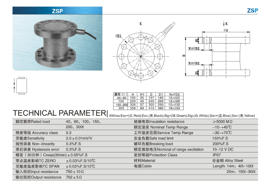 寧波柯力稱重傳感器ZSP-(40t/60t/100t/150t/200t/300t)
