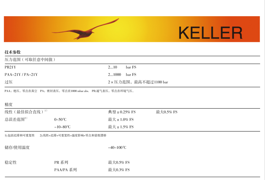 PA-21Y KELLER壓力傳感器產(chǎn)品描述:0lh廣州南創(chuàng)電子科技有限公司