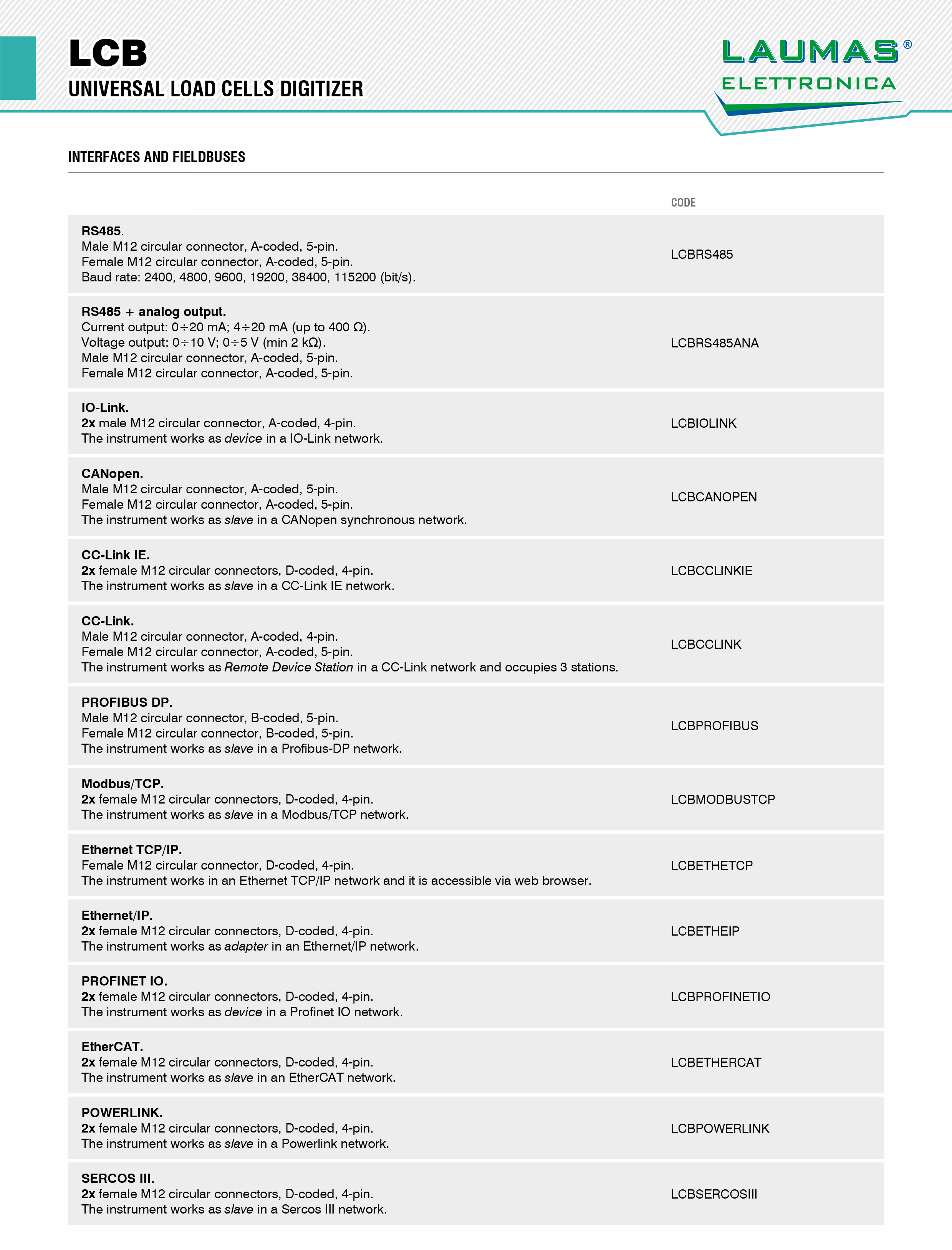 廣州南創(chuàng)專(zhuān)業(yè)提供意大利Laumas_LCB重量變送器,原裝正品,質(zhì)量保證,貨期短,美國(guó)CHECKLINE打造頂級(jí)傳感器品牌,【華南區(qū)★一級(jí)經(jīng)銷(xiāo)商】做中國(guó)的,世界的工業(yè)備品備件分銷(xiāo)專(zhuān)家,(LCBRS485、LCBRS485ANA、LCBIOLINK、LCBCANOPEN、LCBCCLINKIE、LCBCCLINK、LCBPROFIBUS、LCBMODBUSTCP、LCBETHETCP、LCBETHEIP、LCBPROFINETIO、LCBETHERCAT、LCBPOWERLINK、LCBSERCOSIII)訂購(gòu)方便,還可以享受當(dāng)?shù)貍€(gè)性化支持,免費(fèi)技術(shù)支持,歡迎來(lái)電訂購(gòu)。