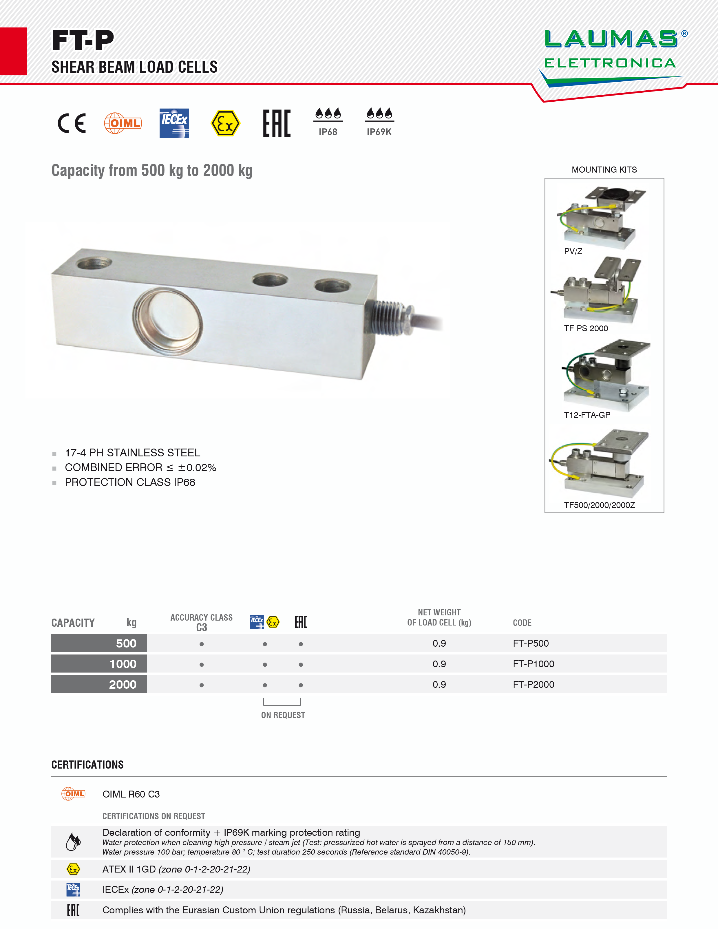 【廣州★南創(chuàng)】專業(yè)供應意大利LaumasFT-P系列稱重傳感器,【意大利LaumasFT-P系列】保證貨期快捷,100%原裝正品,10年行業(yè)經驗專注高端高質傳感器服務,提供自動化完整解決方案。意大利LaumasFT-P系列稱重傳感器相關型號:FT-P500Kg、FT-P1000Kg、FT-P2000KgQFK廣州南創(chuàng)電子科技有限公司