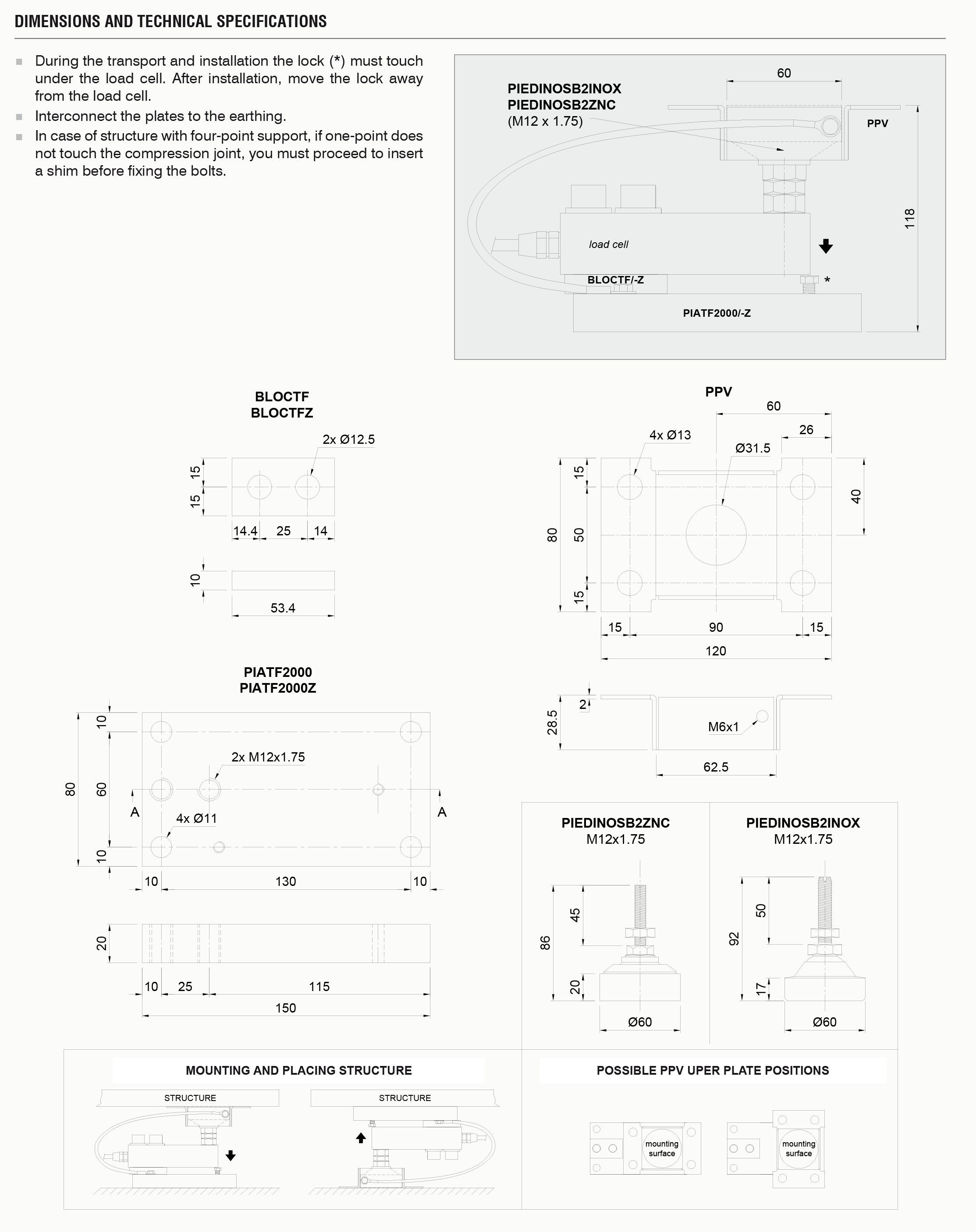 安裝套件,用于滾筒,平臺,水箱,料斗等;配有可自動對中的腳,高度可調(diào),可抵抗側(cè)向力和防傾斜,以補償支撐板的不對中。