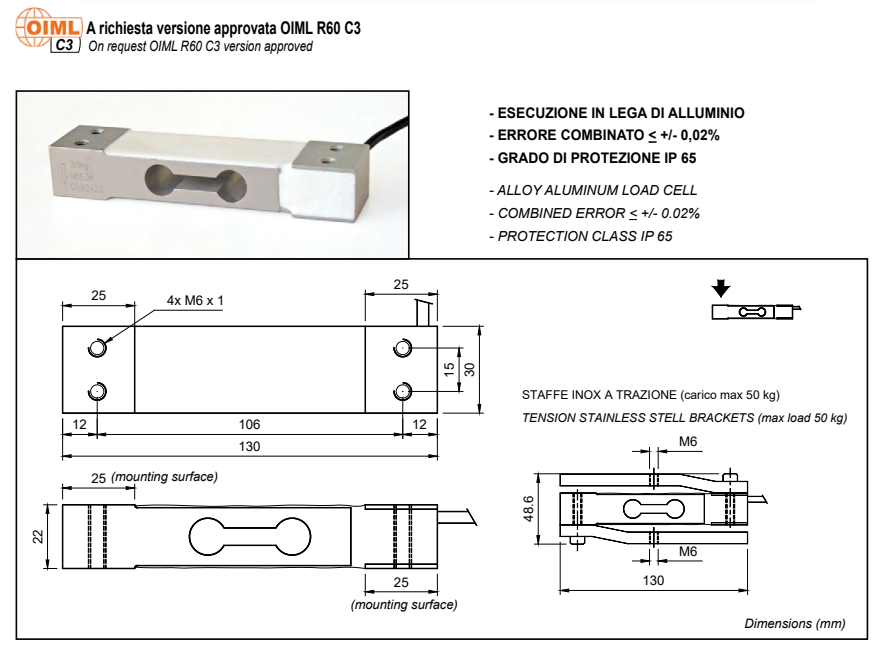 意大利 laumas ALL-50KG稱重傳感器特點:wAa廣州南創(chuàng)電子科技有限公司
