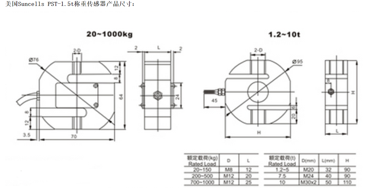 寧波柯力稱重傳感器PST-1.2t產(chǎn)品技術(shù)參數(shù)及尺寸圖:ClH廣州南創(chuàng)電子科技有限公司