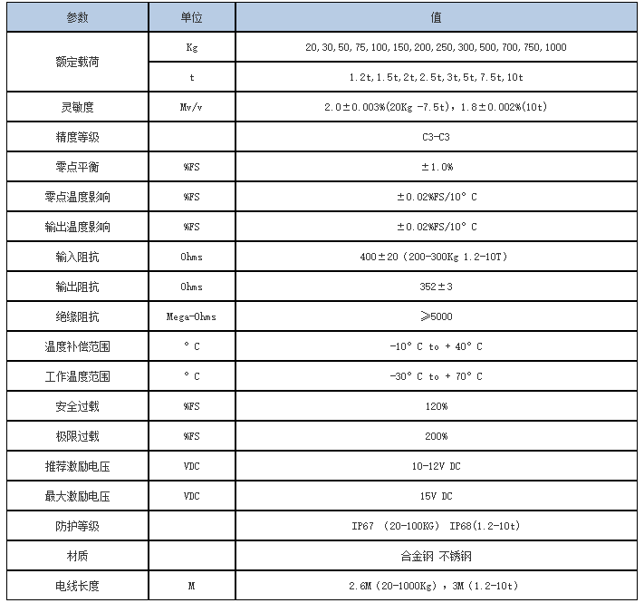 量程可選:20Kg 30kg 50kg 75kg 100kg 150kg 200kg 250kg 300kg 500kg 700kg 1t 1.2t 1.5t 2t 2.5t 3t 5t 7.5t 10t 750kg ClH廣州南創(chuàng)電子科技有限公司